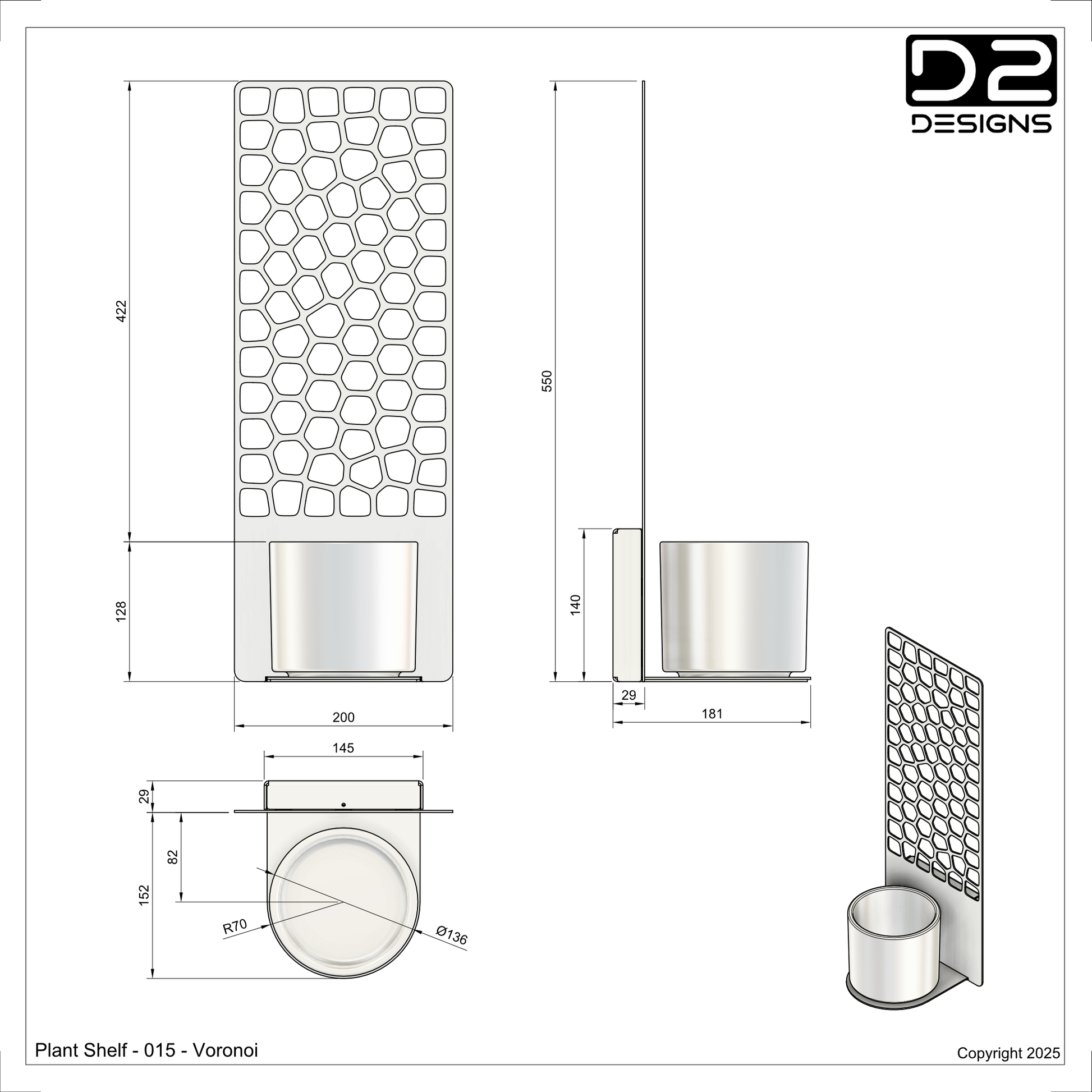Wall mounted floating pot shelf and decorative interchangeable back plate.