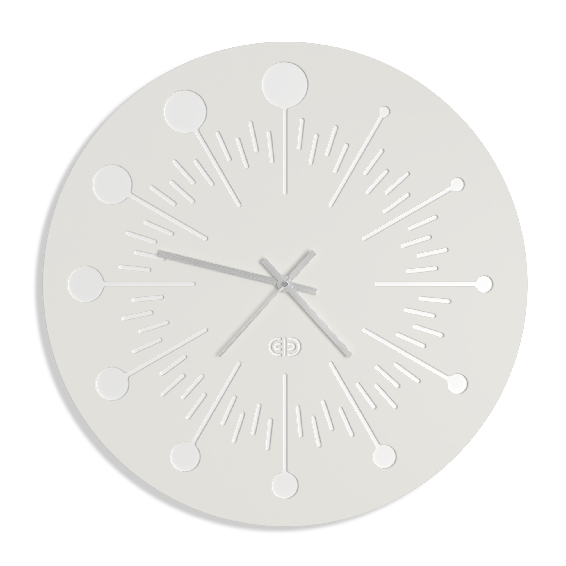 Silver hour, minute and second hands.