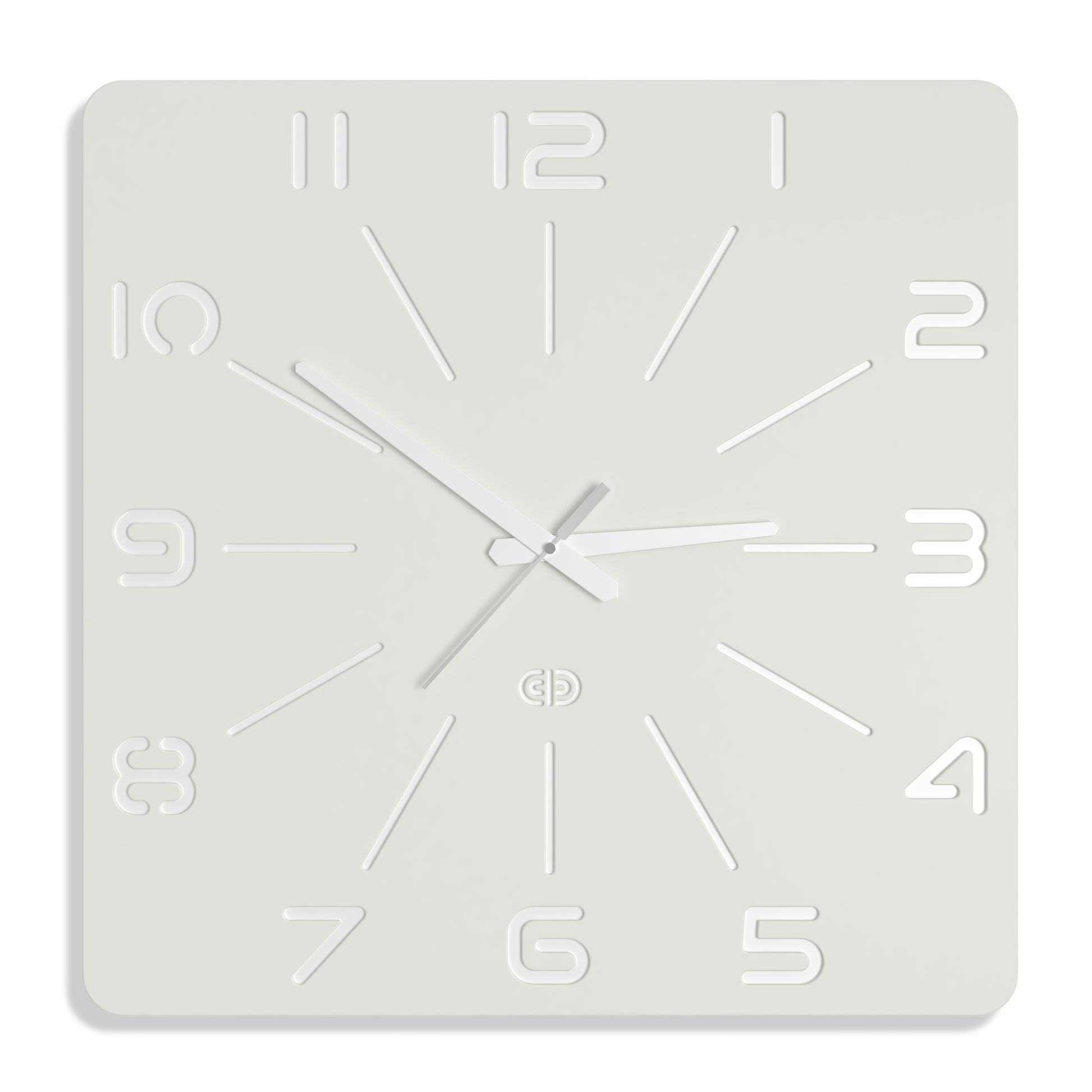 White hour and minute hands. Silver second hand.