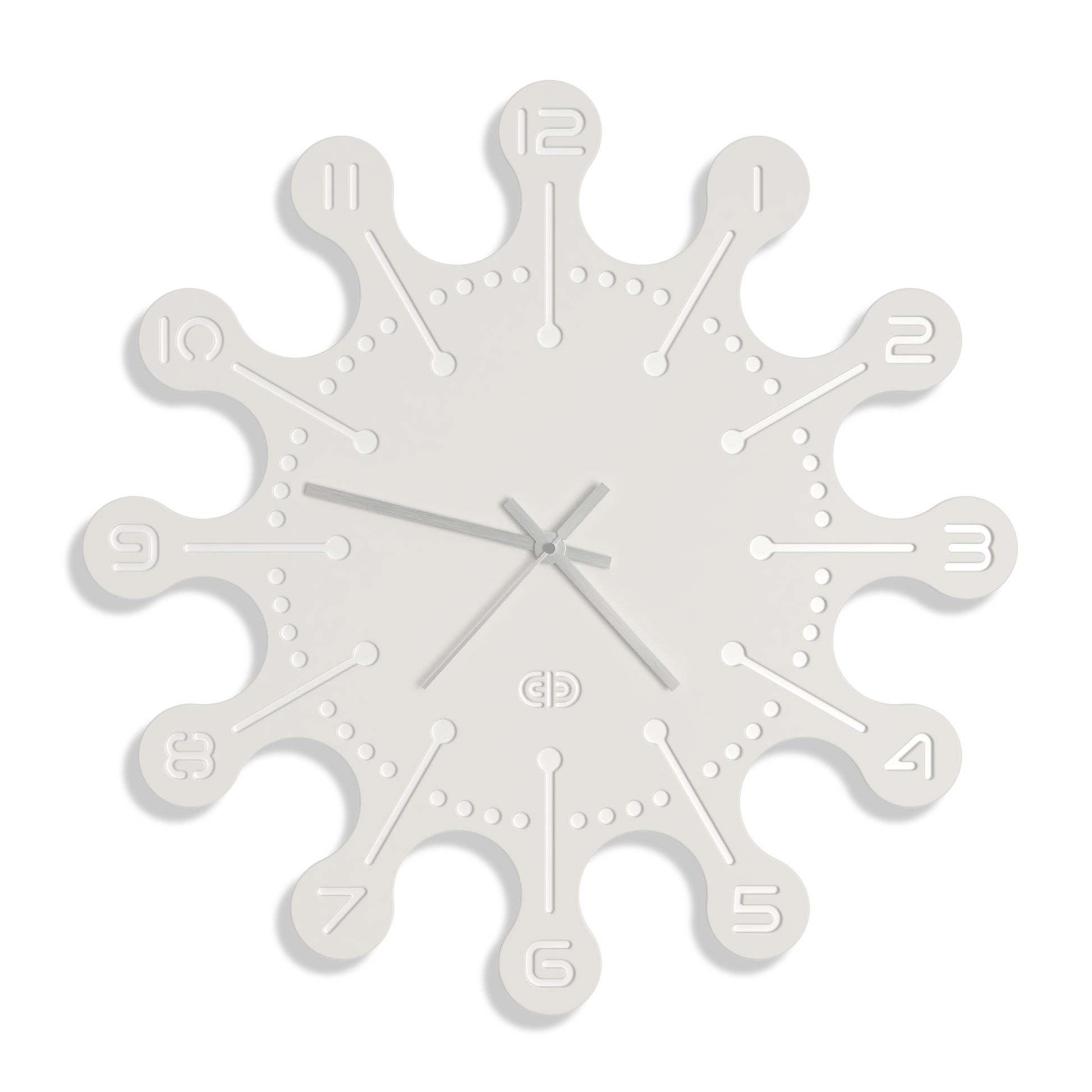 Silver hour, minute and second hands.