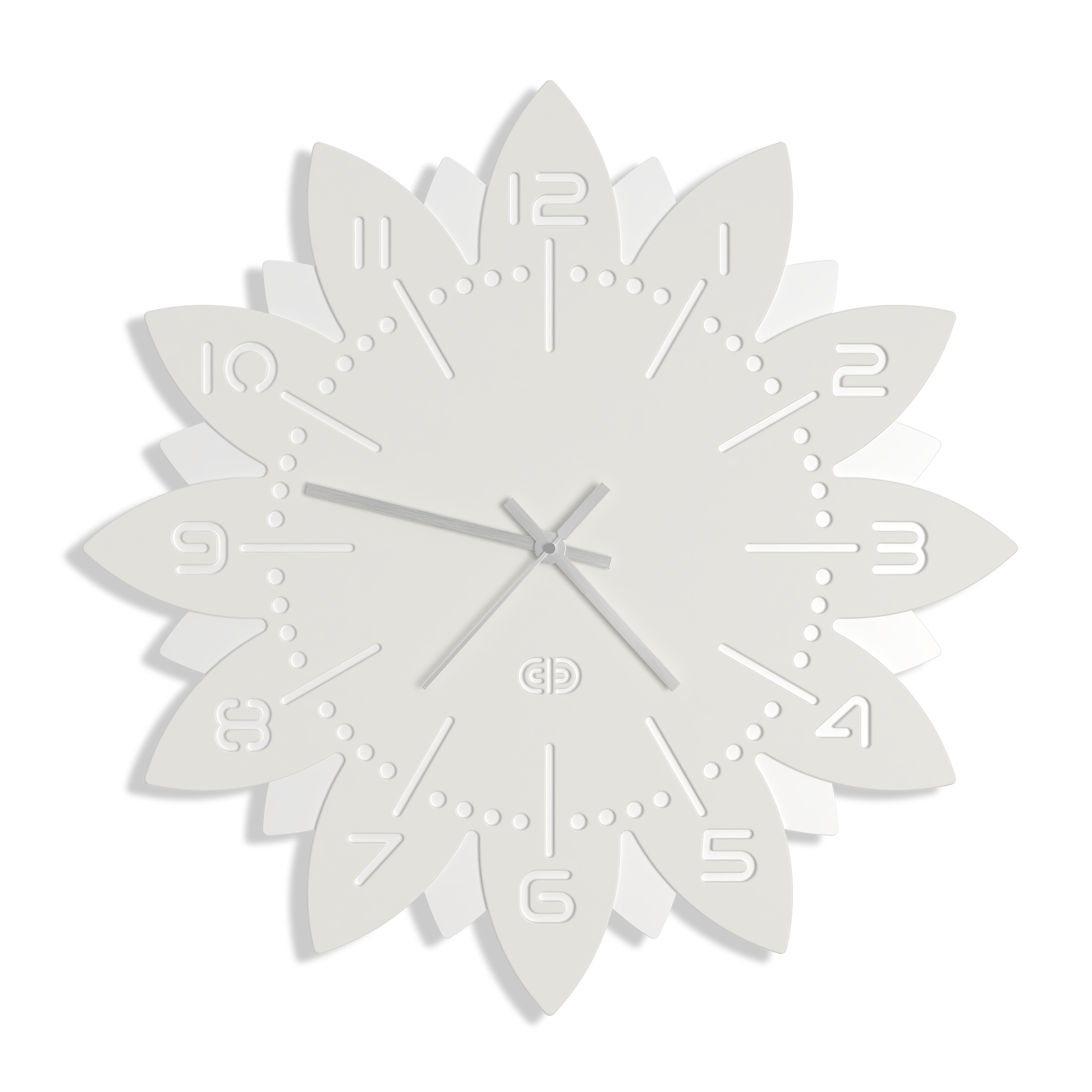 Silver hour, minute and second hands.